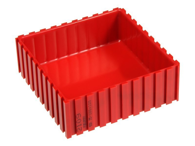 Krabička slouží k uspořádání úložného prostoru v zásuvkách, v regálech a na pracovních plochách. Jednotlivé krabičky je možno spojovat jako stavebnici pomocí rybinového drážkování do libovolných sestav. Mohou se kombinovat mezi sebou navzájem, ale i s boxy. Pro uložení citlivých přístrojů či součástek můžete na dno krabičky položit výstelku. Rozměr 35 x 102 x 52 mm. Barva červená RAL 3020 nebo modrá RAL 5015.