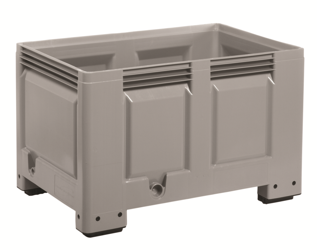 Pevný paletový kontejner. Provedení 4 nohy. Hladké dno a stěny. Ideální pro dlouhodobé skladování. Jednoduše omyvatelný. Vyhovující pro využití v potravinářském průmyslu. Vhodný pro zboží s velkou hmotností.