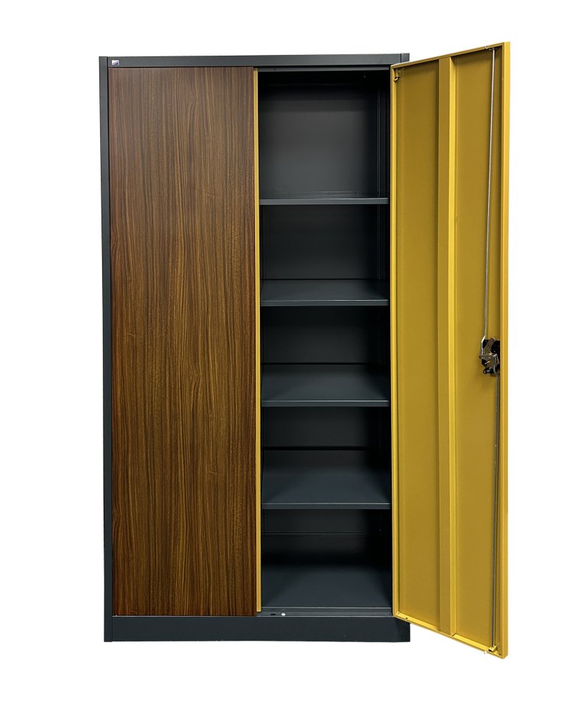 Plechová policová skříň s vloženými dveřmi C01B antracit/imitace tmavé dřevo2 398 Kč bez DPH