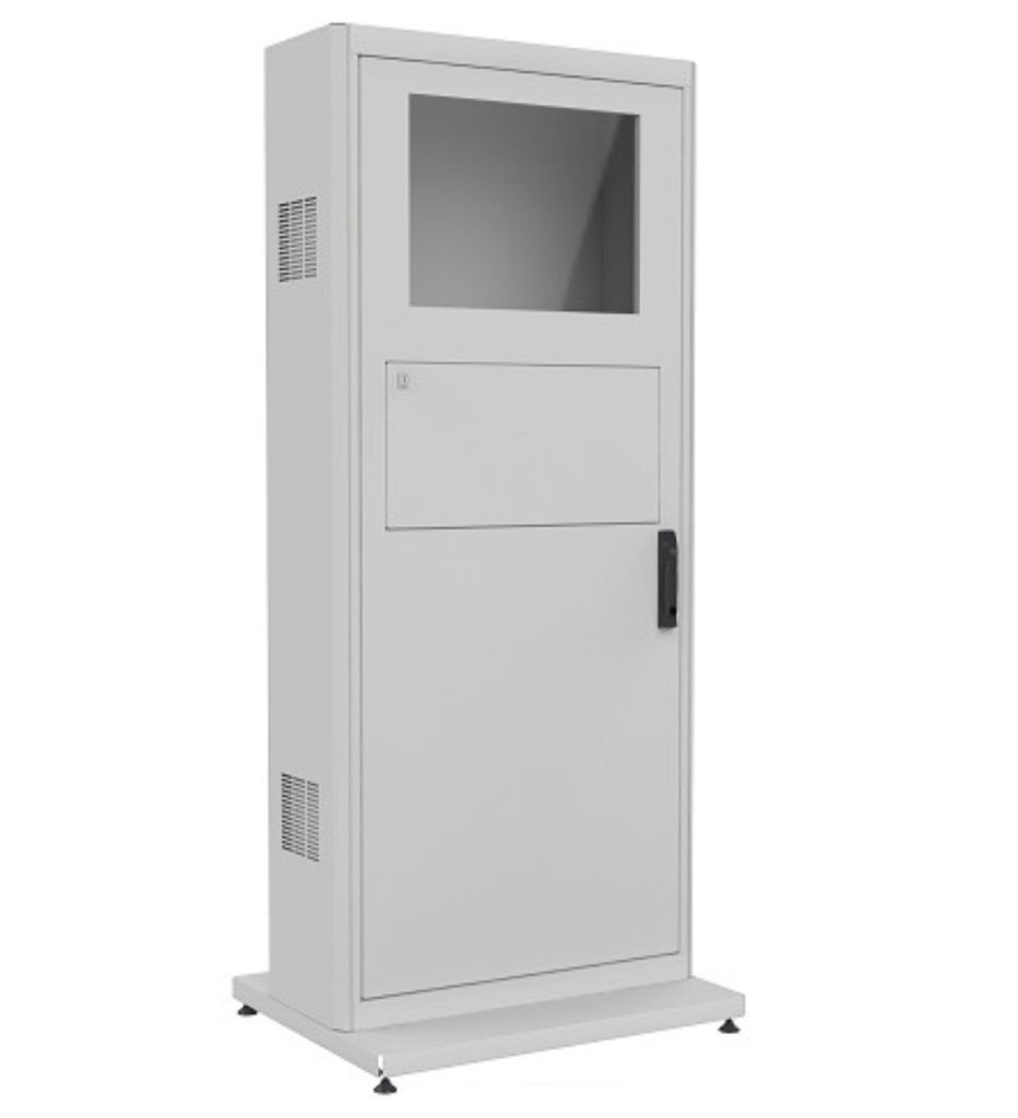 Počítačová skříň vyrobená z 0,8 mm silného ocelového plechu. Prosklená část je upravena na hloubku LCD displeje velikosti 22 palců. výsuvná police pro klávesnici. Zadní strana má ventilační otvory. Rozměry v mm (v x š x h) 1770 x 755 x 330. S elektrickým vybavením.