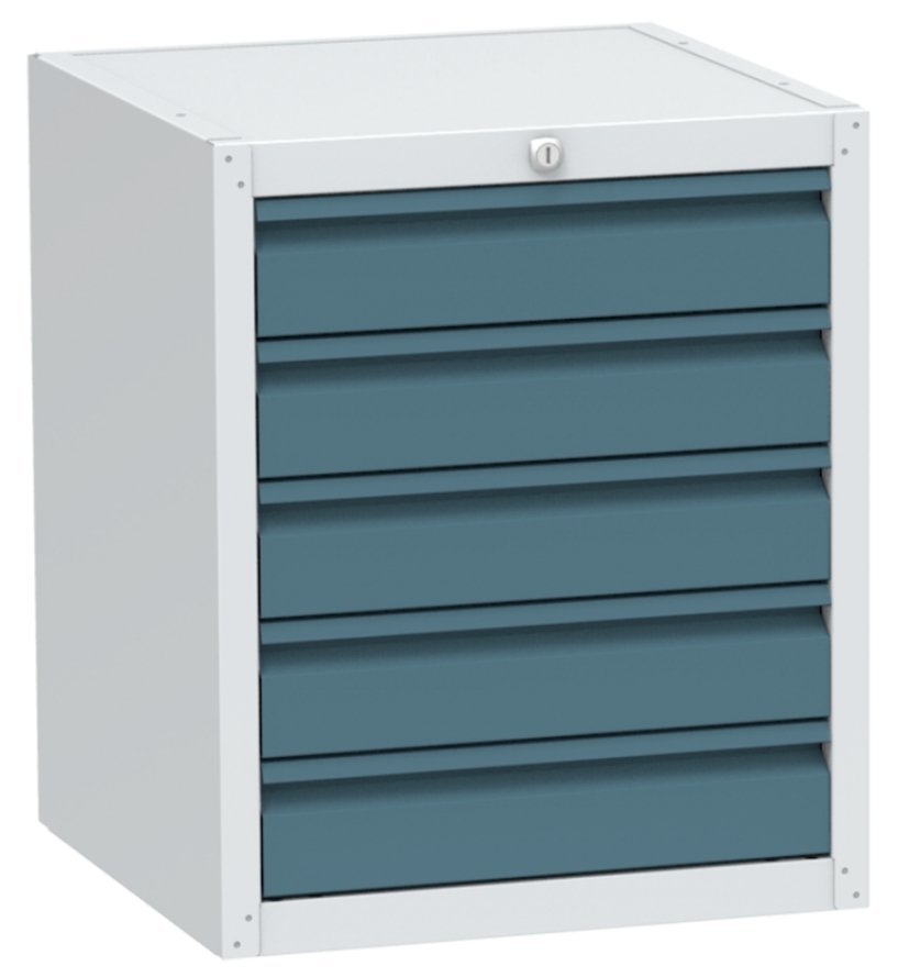 Podvěsná zásuvka pracovního stolu, šířka 500, výška 600, hloubka 500 mm. 5x zásuvka 99 mm. Barva korpusu RAL 7035 světle šedá.