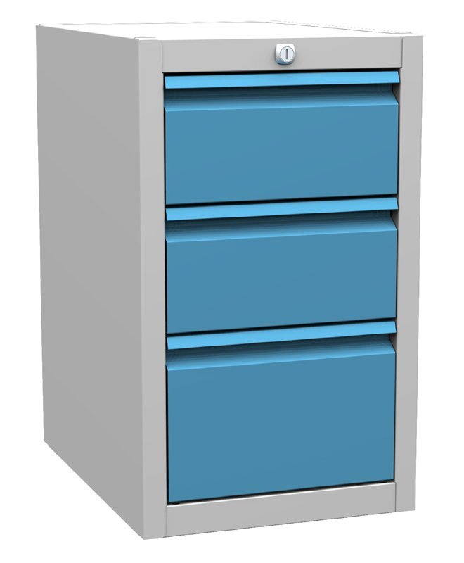 Třízásuvkový podvěsný kontejner ke stolům MTS, šířka 360, výška 600, hloubka 500 mm. Barva korpusu RAL 7035 světle šedá. celý popis a parametry
