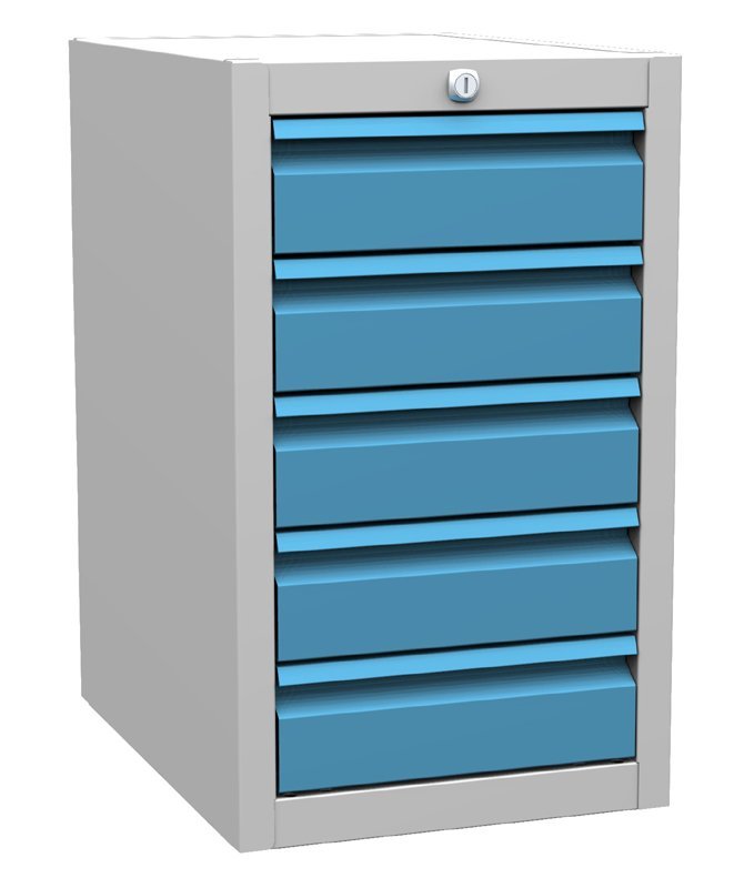 Pětizásuvkový podvěsný kontejner ke stolům MTS, šířka 360, výška 600, hloubka 500 mm. Barva korpusu RAL 7035 světle šedá.