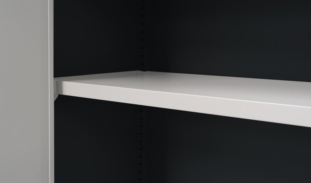 Police hladká včetně podpěrek k uchycení do skříně. Nosnost 40 kg, barva světle šedá RAL 7035. Pro skříně šířky 1200 mm. Další možnosti viz varianty produktu.