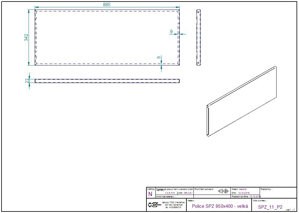 Police velká pro skříně SPZ. Výška 22 x šířka 885 x hloubka 342 mm. Barva světle šedá, modrá. celý popis a parametry