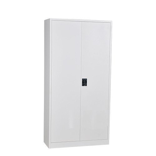 Dvoudveřová demontovaná skříň z ocelového plechu tloušťky 0,6 mm. Povrchová úprava antistatickou šedou práškovou barvou RAL 7035. Výška 1850 x šířka 900 x hloubka 390 mm, 4x police, cylindrický rozvorový zámek se dvěma klíči.