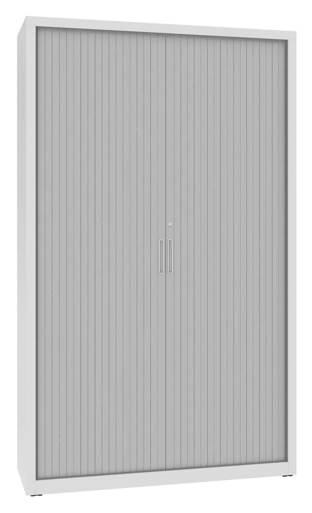 Kovová skříň s horizontální roletou se 4 policemi. Nosnost police 40 kg. Různé barvy na výběr. Výška 1990 x šířka 1000 x hloubka 435 mm.