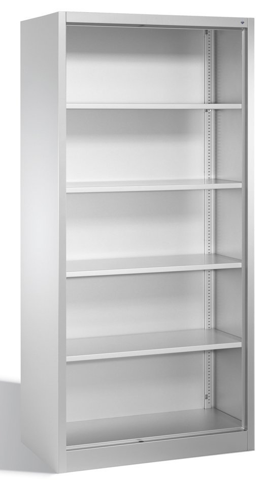 Policová skříň s robustní ocelovou konstrukcí. Bez dveří. 4x přestavitelná police. Barva skříně - světle šedá RAL 7035. Rozměry v celý popis a parametry