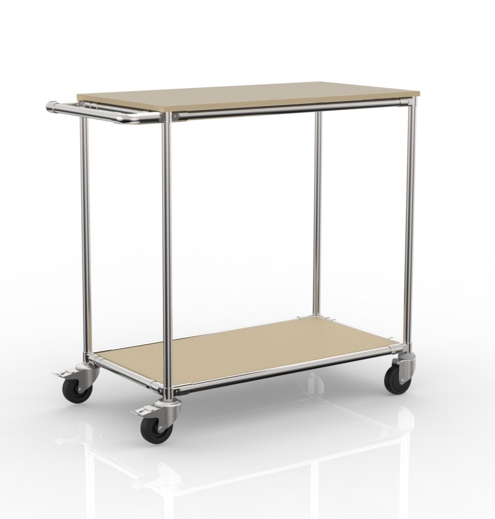 Transportní vozík z trubkového stavebnicového systému je šikovným pomocníkem vhodným do průmyslových prostor, skladů a výrobních hal. Díky své robustní konstrukci a vysoké nosnosti je ideálním řešením pro přepravu široké škály zboží a materiálů. Lamino deska tloušťky 18 mm poskytuje pevný a stabilní odkládací plochu. Nosnost vozíku 300 kg, nosnost patra 100 kg. Vozík je vybaven kolečky o průměru 120 mm, které umožňují snadný a plynulý pohyb.