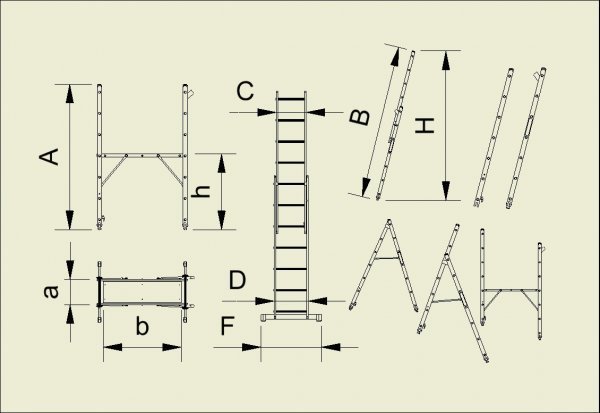 Cenově výhodné schůdky se stabilními stupni (205 x 360 mm z lehkého kovu) s bezpečnostním madlem a odkládací miskou. Konce nosných profilů vybaveny patkami. Kompaktní ve složeném stavu. Počet stupňů 2, pracovní výška 2450 mm, dolní vnější šířka 550 mm, nosnost 150 kg, záruka 10 let.