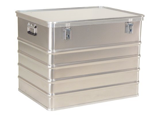 Univerzální stohovatelné bedny vyrobeny z vysoce kvalitní hliníkové slitiny. Odklápěcí víko s gumovým těsněním a dvěma upevňovacími popruhy. Dvě rukojeti. Různé rozměry, objem 50 - 137 l.