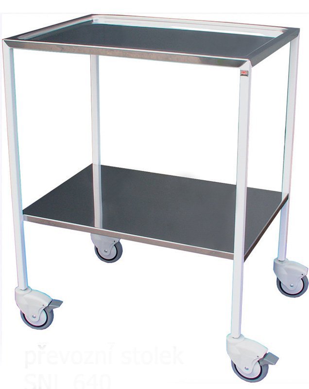 Pojízdný stolek je vyroben z ocelových lakovaných profilů. Odkládací plochy tvoří dvě nerezová plata, přičemž horní plato je lisované se zaoblenými rohy. Stolek je opatřen dvěma brzděnými a dvěma nebrzděnými kolečky o průměru 75 mm. Slouží k odkládání a rozvozu chirurgických nástrojů a zdravotnického materiálu.