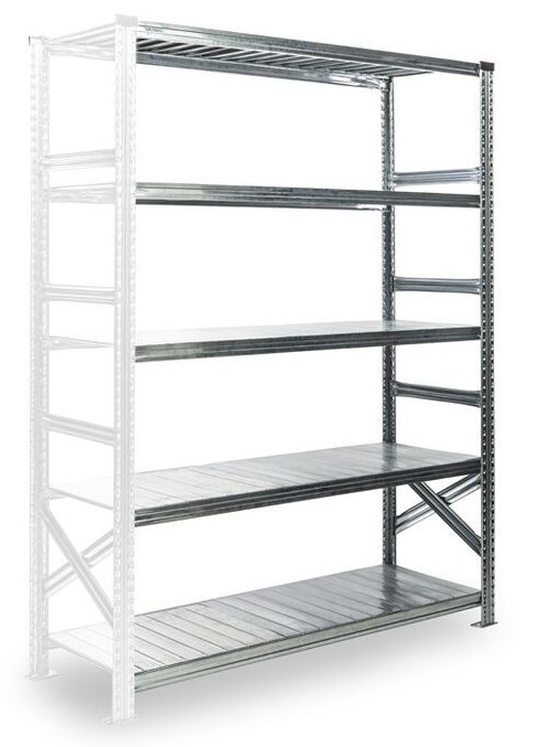 Bezšroubový základní regál SUPER, provedení pozink. Výška 1972 mm, šířka police 1500 mm, hloubka police 400 mm. 5 polic, nosnost police 150 kg. Možnost nastavování přístavnými regály do nekonečných délek (viz Můžete si dokoupit).