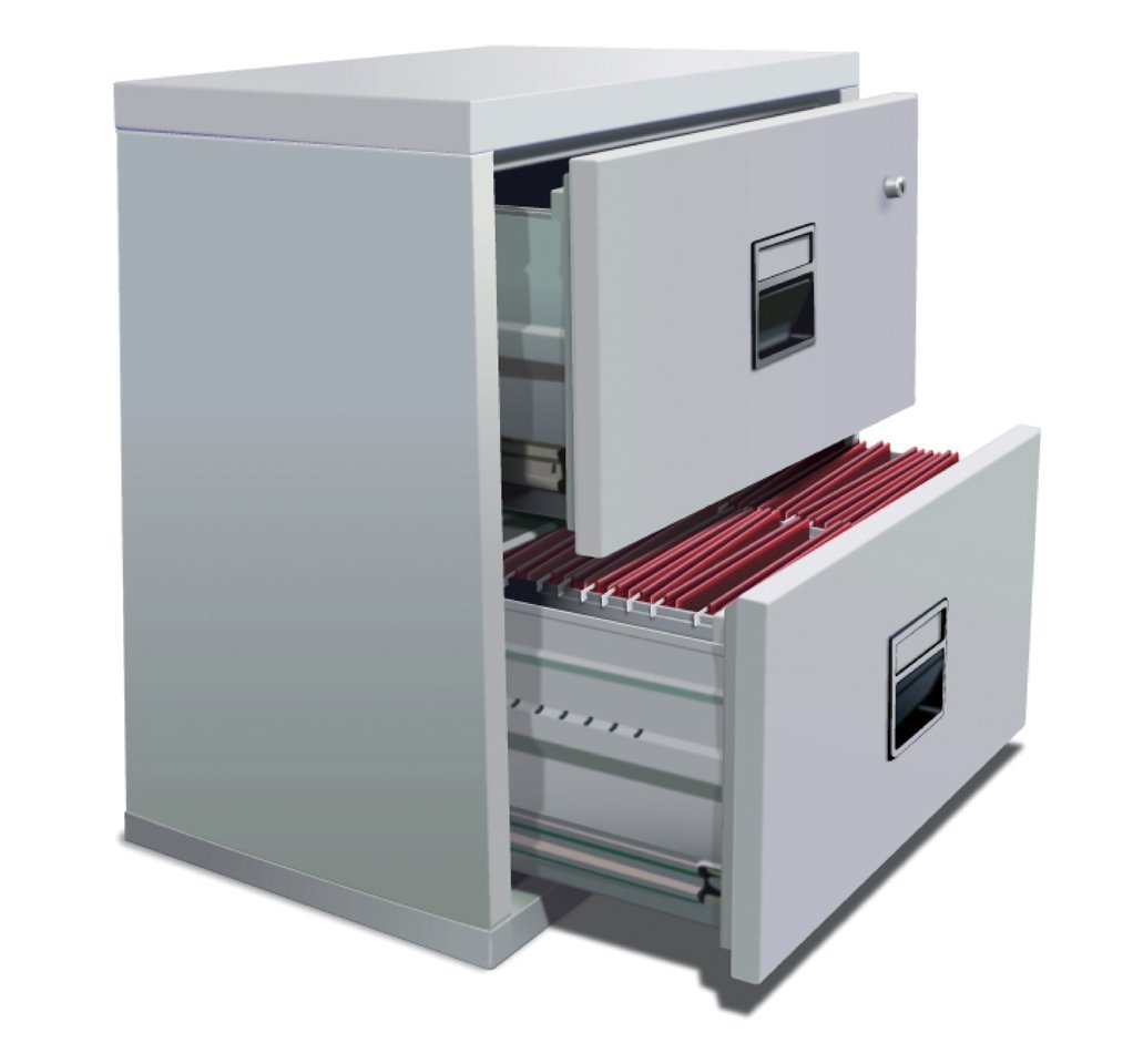 Protipožární kartotéka na dokumenty dvouzásuvková. Odolnost proti požáru podle normy UNE-EN 15659 60 minut. Výška 825 x šířka 545 x hloubka 653 mm, barva světle šedá. Zamykání na klíč.