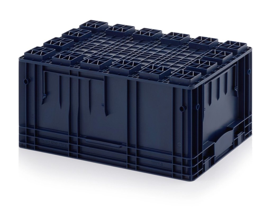 R-KLT přepravka vyrobená z kvalitního polypropylenu odolného vůči olejům, tukům a většině kyselin a louhů. Tepelná stálost od -20° do 100° C, barva RAL 5003 modrá. Rozměry v. 280 x š. 400 x hl. 600 mm. Extrémně stabilní kompozitní dno, nosnost přepravky 20 kg, max. stohovací nosnost 600 kg.