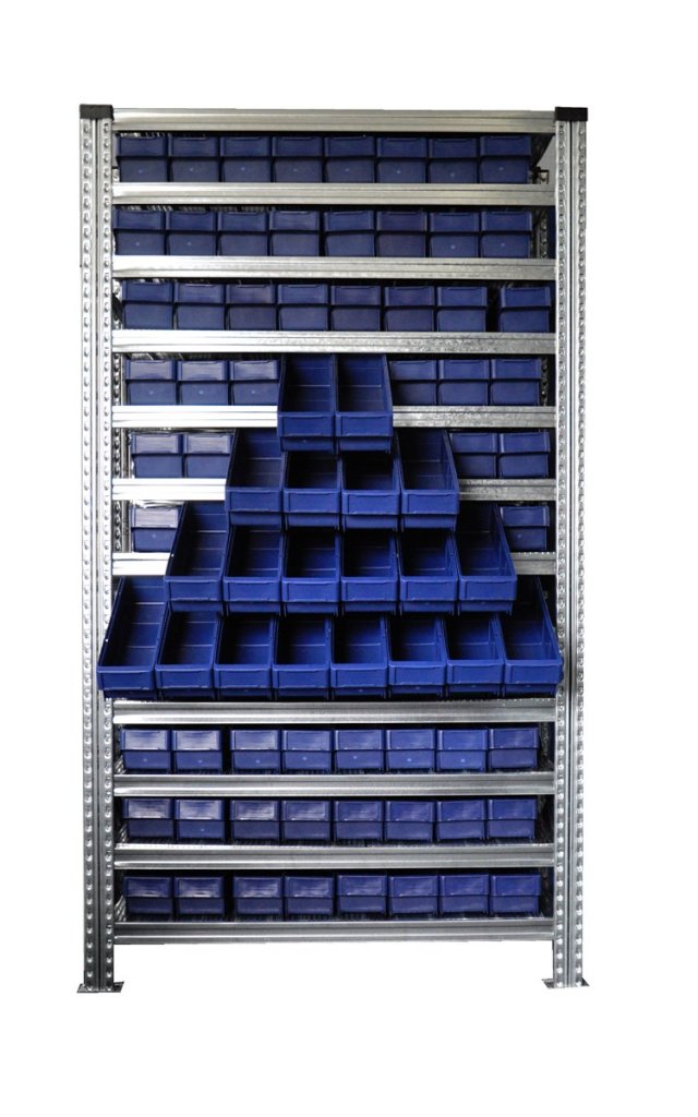 Regál s přepravkami 100 x 115 mm - 88 ks (4 modely)13 082 Kč bez DPH