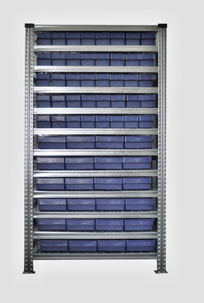 Regál s přepravkami 100 x 115 mm - 88 ks (4 modely)13 082 Kč bez DPH