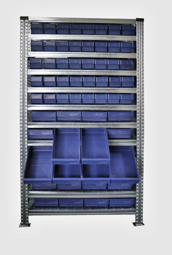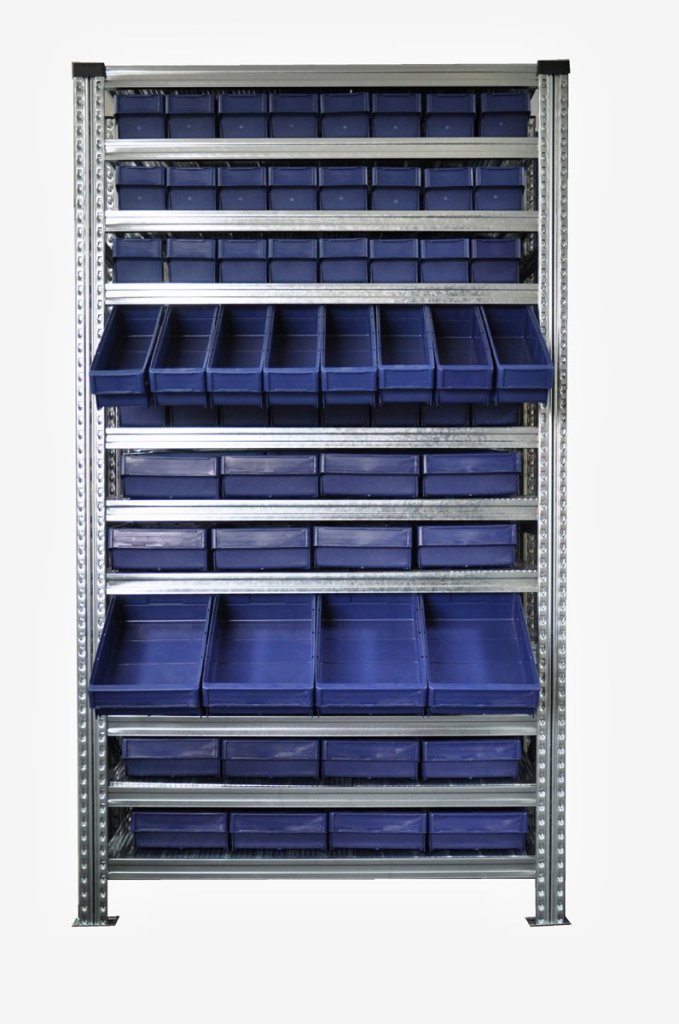 Regál s přepravkami 100 x 230 mm - 24 ks, 100 x 115 mm - 40 ks (4 modely)11 882 Kč bez DPH