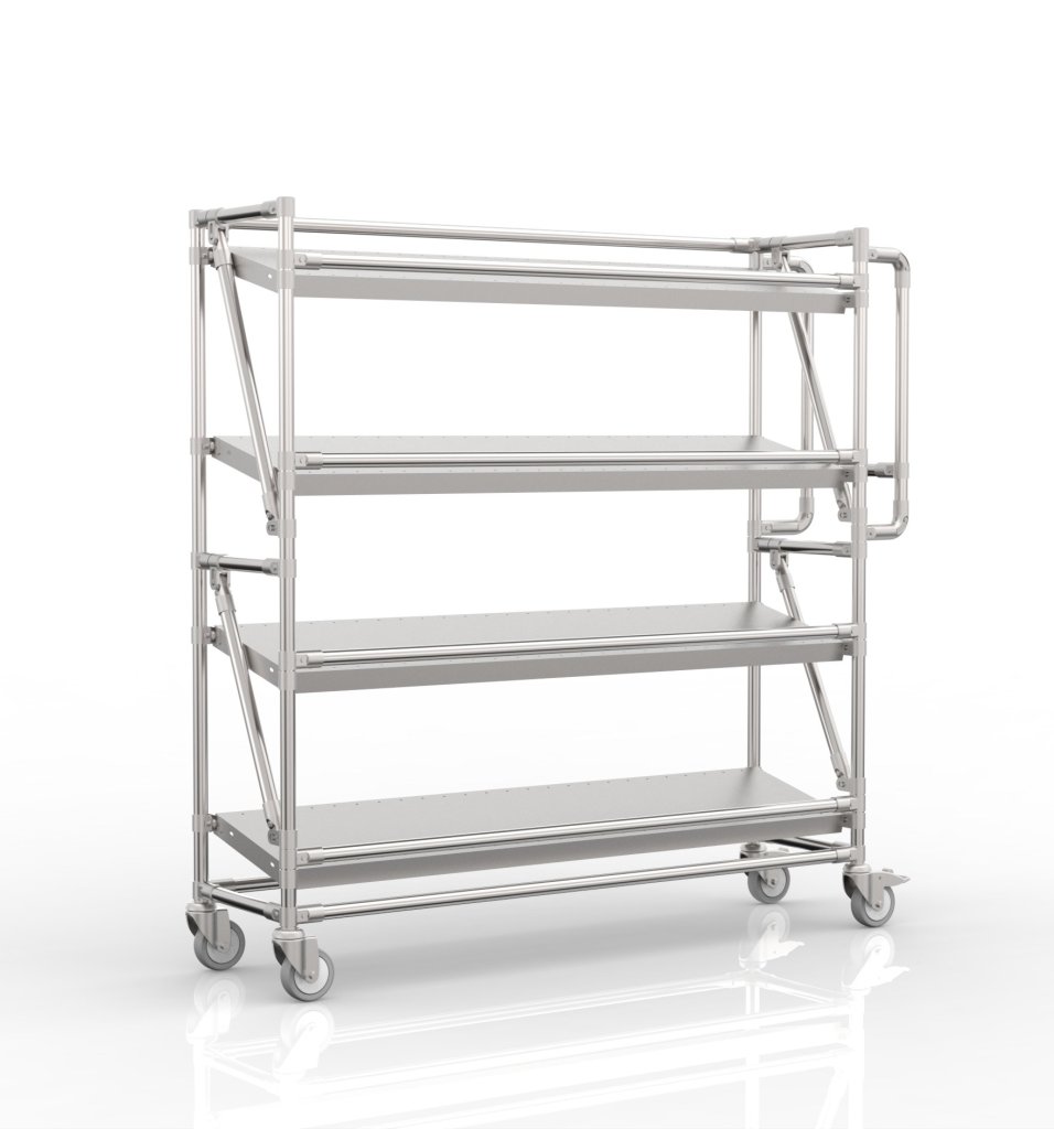 Regálový vozík na přepravky se čtyřmi šikmými policemi je praktickým pomocníkem pro manipulaci ve výrobních firmách a logistických celý popis a parametry