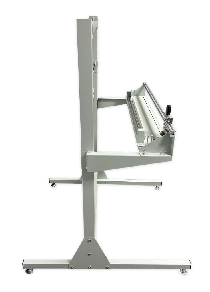 Vodorovný řezací stojan jednoduchý pro rolované balicí materiály. Rozměry výška 1050 x šířka 950 x délka 1150 mm. Barva konstrukce černá.