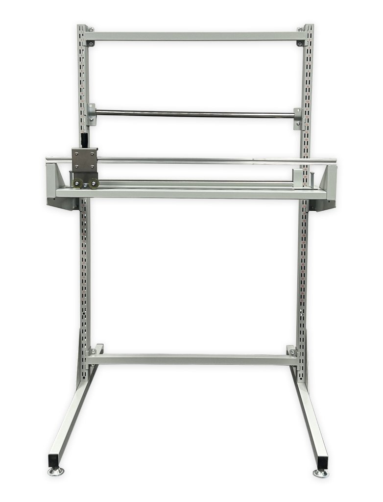 Vodorovný řezací stojan pro různé balicí materiály. Rozměry výška 1430 x šířka 935 x délka 1000 mm. Barva konstrukce šedá. celý popis a parametry