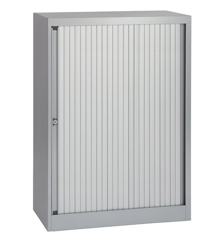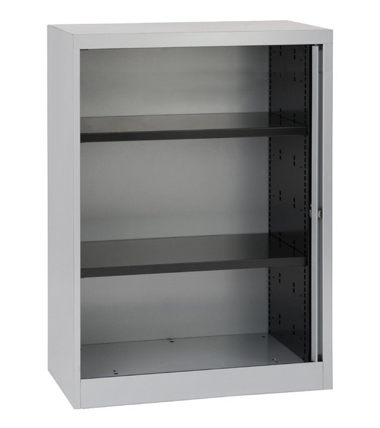 Kovové skříně s horizontální roletou s jednou policí, šířka 800, výška 695, hloubka 430 mm, různé barvy.