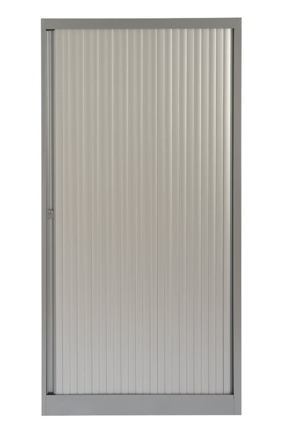 Kovové skříně s horizontální roletou se čtyřmi policemi, šířka 800, výška 1980, hloubka 430 mm, různé barvy.