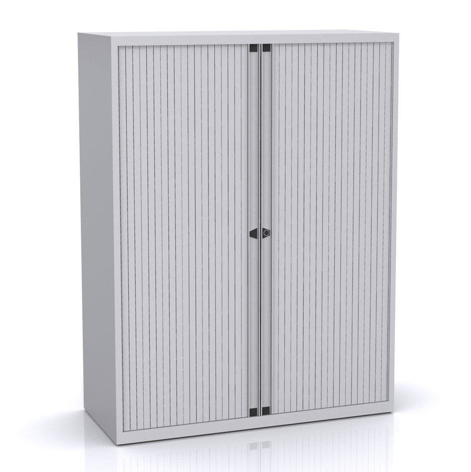 Kovové skříně s horizontální roletou se dvěmi policemi, šířka 1000, výška 1181, hloubka 430 mm, různé barvy.