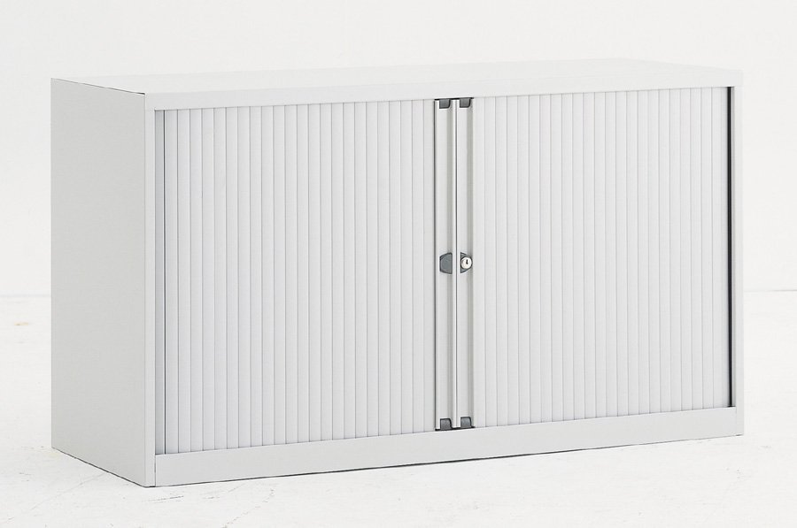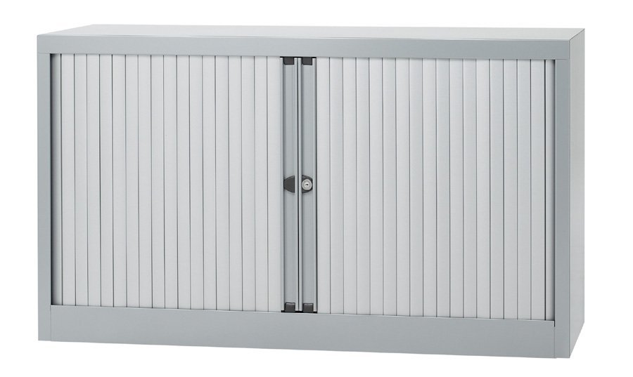 Kovové skříně s horizontální roletou s jednou policí šířka 1200, výška 695, hloubka 430 mm, různé barvy.