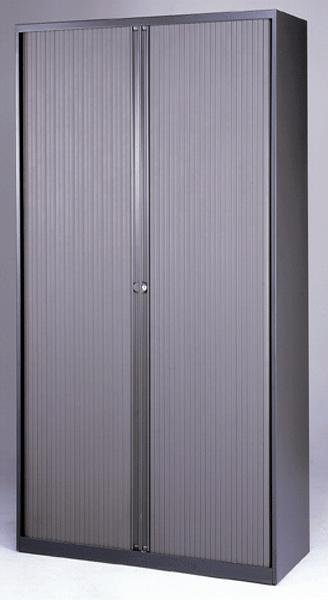 Kovové skříně s horizontální roletou se čtyřmi policemi šířka 1200, výška 1980, hloubka 430 mm, různé barvy.
