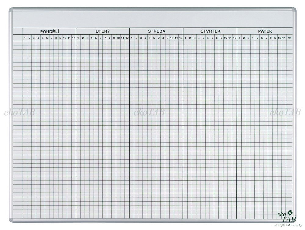 Rozvrhová magnetická tabule. Pro 40 tříd 1 - 12 hodin. Rám tabule z eloxovaného hliníku, plastové rohy. Dodáváno včetně montážní celý popis a parametry
