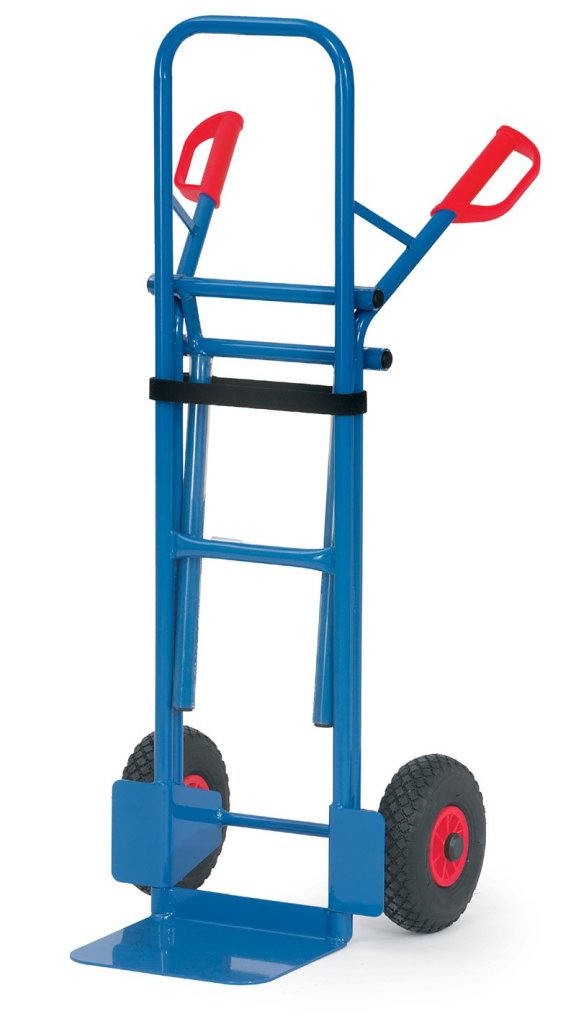 Ocelový rudl německé výroby pro přepravu židlí, konstrukce ze svařované oceli, lopata z ocelového plechu, ochranná madla pro ruce. Barva modrá RAL 5007. Dvě pneumatická nebo gumová kola ložisková. Rameno pro přepravu židlí je možné sklopit a podle potřeby umístit do příslušné výšky.