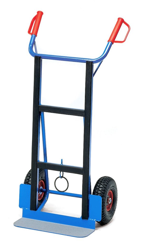 Ocelový rudl německé výroby pro přepravu bílé techniky, konstrukce ze svařované oceli, lopata z ocelového plechu, ochranná madla pro ruce. Lopata a některé části jsou polstrovány. Barva modrá RAL 5007. Dvě pneumatická kola ložisková. K rudlu je možné přikoupit specialní vkládací držadla pro stěhování po schodech.