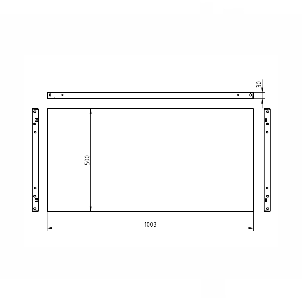 Police jsou volně přestavitelné po 50 mm. Samostatné police k dokoupení v balení včetně spojovacího materiálu. Nosnost 100 kg, hloubka 500 mm, šířka 1000 mm, výška 30 mm.