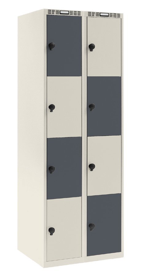 Osmidveřová šatní kovová skříňka se svařovanou konstrukcí a moderním designem ventilačního systému. Výška 1800 x šířka 600 x hloubka 500 mm. Na dveřích samolepící štítek na jméno. 16 barevných odstínů na výběr v ceně bez příplatku. Různé druhy zamykání.