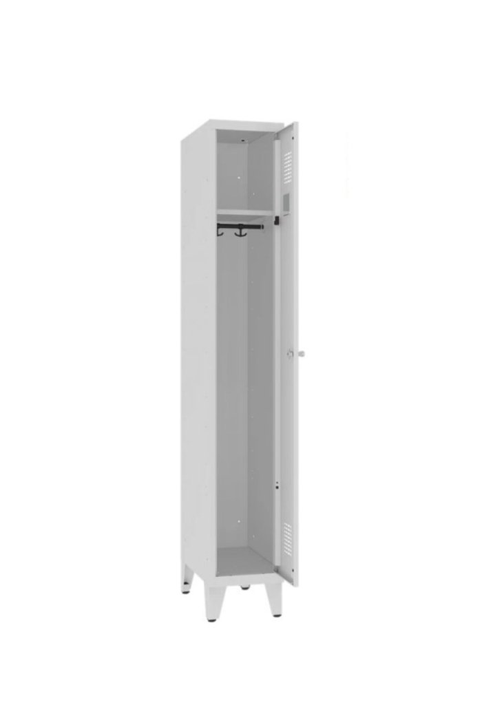 Jednodveřová šatní skříňka na nohách, se svařovanou konstrukcí a moderním designem ventilačního systému. Výška 1940 x šířka 300 x celý popis a parametry