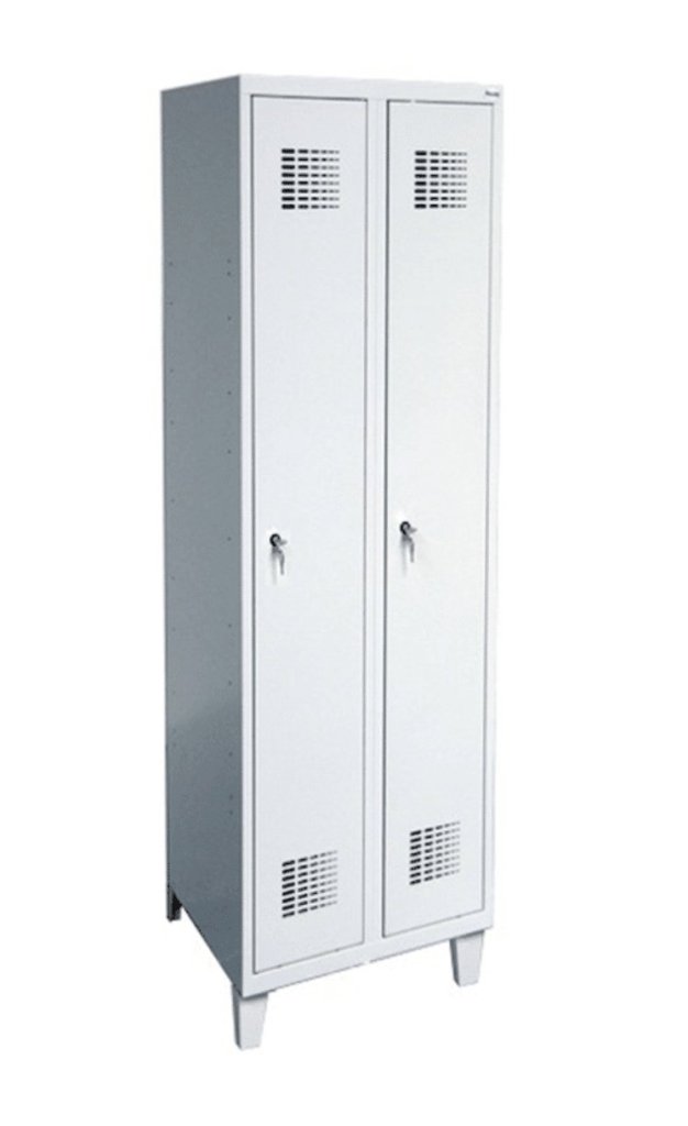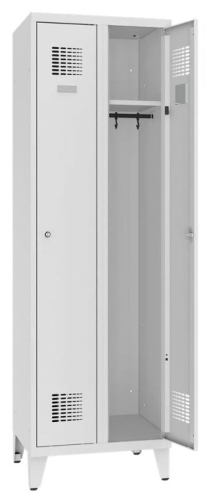 Dvoudveřová šatní skříňka na nohách, svařovaná s moderním designem ventilačního systému. Výška 1940 x šířka 600 x hloubka 500 mm. celý popis a parametry