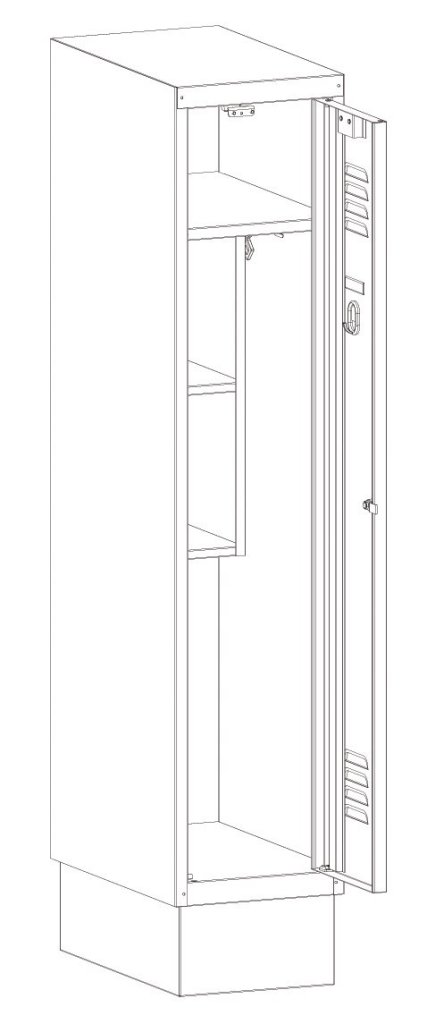 Jednodveřová šatní kovová skříňka se sníženou výškou a moderním designem ventilačního systému. Vhodná pro žáky prvního stupně. Výška 1450 x šířka 300 x hloubka 500 mm. Na dveřích samolepící štítek na jméno. 16 barevných odstínů na výběr v ceně bez příplatku. Různé druhy zamykání.