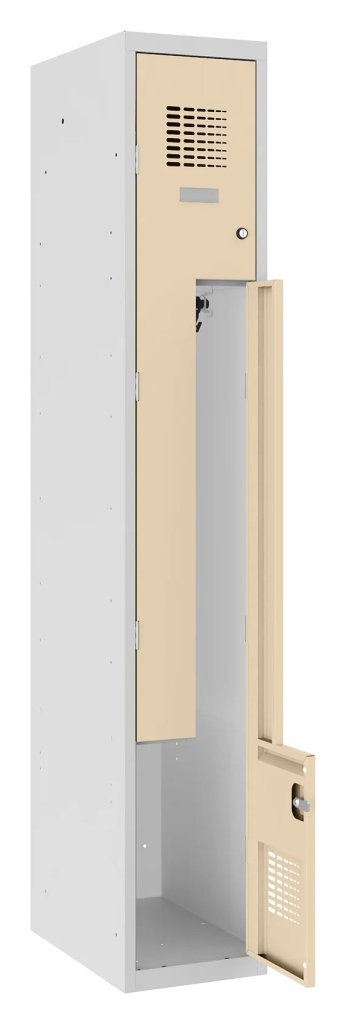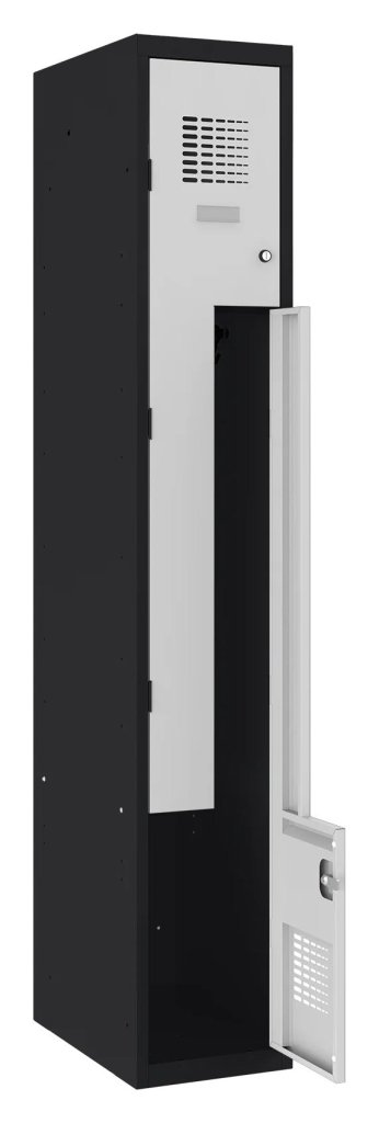 Dvoudveřová šatní skříňka se svařovanou konstrukcí a moderním designem ventilačního systému. Ideální do malých prostor. Výška 1800 celý popis a parametry