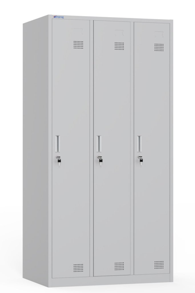 Šatní skříň kovová tříoddílová s uzávěrem pro visací zámek