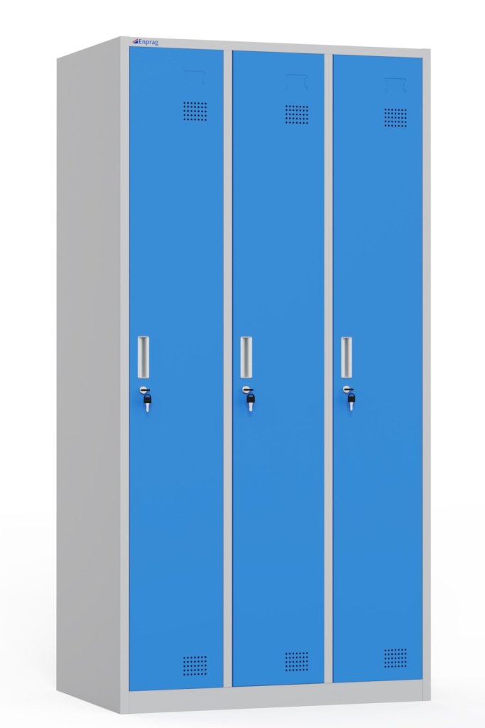 Šatní skříň kovová tříoddílová s uzávěrem pro visací zámek