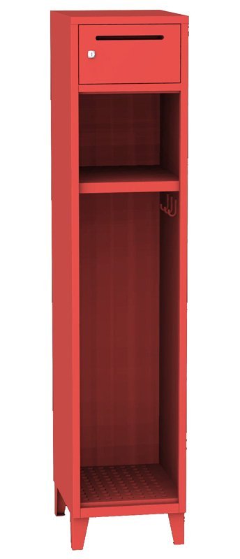 Šatní skříň kovová pro hasiče jednoduchá na nohách, šířka 400, výška 1850, hloubka 500 mm.
