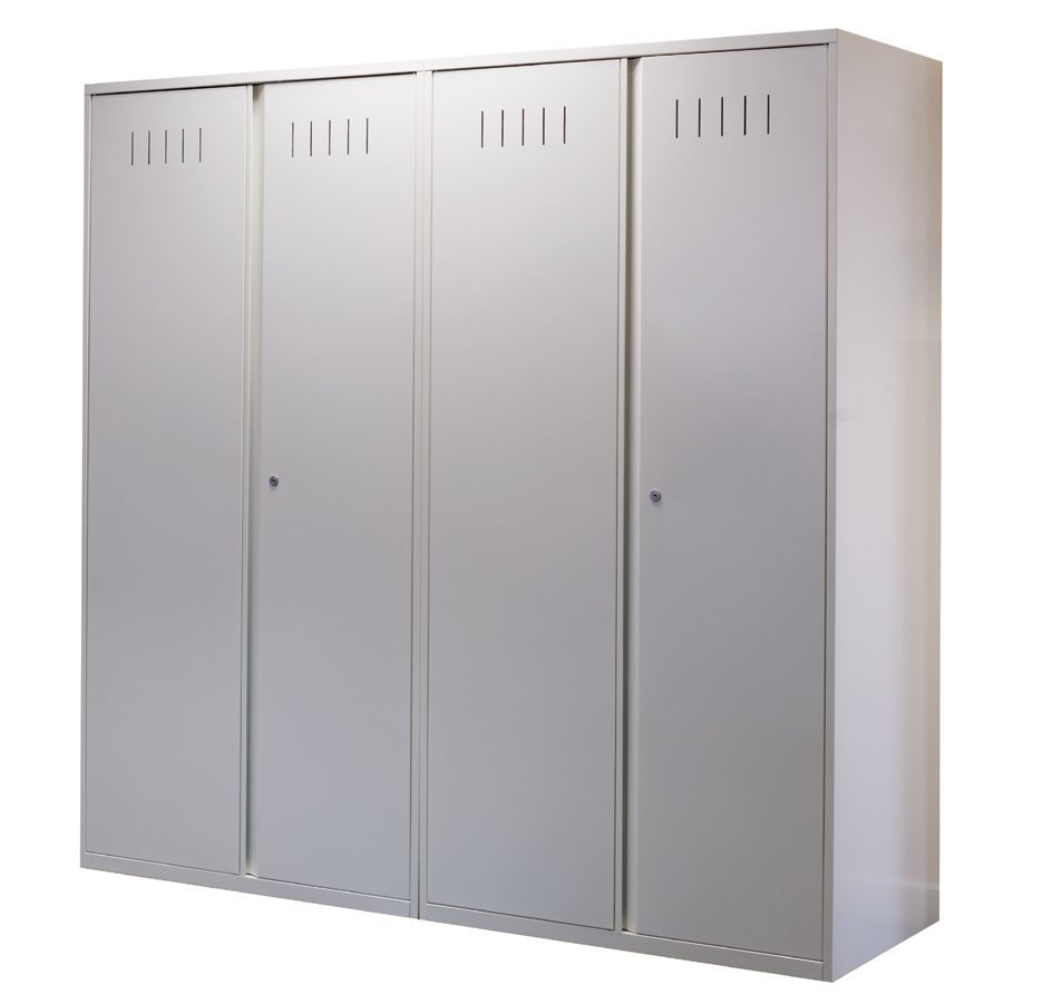 Šatní skříň SystemFile s plnými dveřmi. Výška 1947 - 1971, šířka 800, hloubka 600 mm. Tuhý svařenec z ocelového plechu tloušťky 0,9 mm, rektifikační patky pro vyrovnání nerovností podlahy ±12 mm, záruka 10 let.