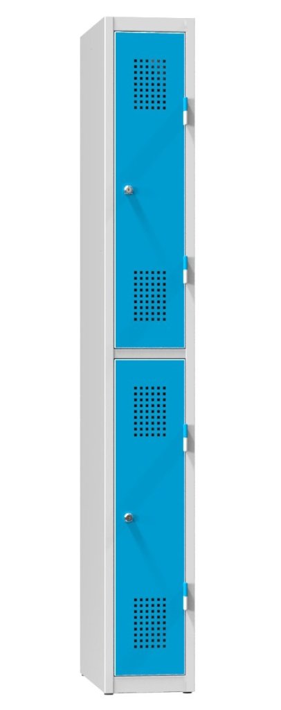 Zamykání - standardně je šatní buňka uzamykána jednobodovou závorou s cylindrickým zámkem a dvěma klíči. Možná je též náhrada zámku otočným uzávěrem pro visací zámek bez příplatku. |