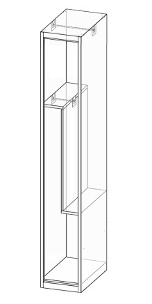 Šatní skříňka, dělené dveře do tvaru Z, výška 1850, šířka 400, hloubka 500 mm. Zamykání na cylindrický zámek nebo uzávěr. Dorazová celý popis a parametry