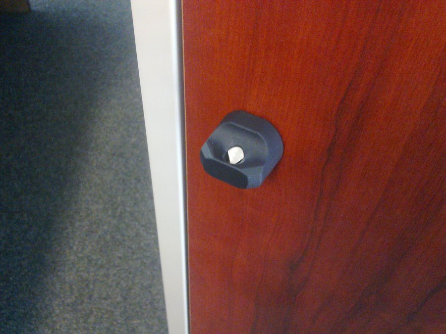 Tříoddílový svařovaný šatník šířky 900 mm s šířkou oddílu 300 mm, výška 1800 mm, hloubka 500 mm. Uzamykání cylindrickým zámkem se dvěma klíči, nebo otočným zámkem pro visací zámek. Barva korpusu světle šedá, barva dveří šedá, modrá, červená, zelená nebo žlutá. V každém oddílu je ohyb zabraňující vtlačení dveří dovnitř skříně a vypáčení zámku.