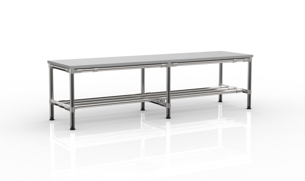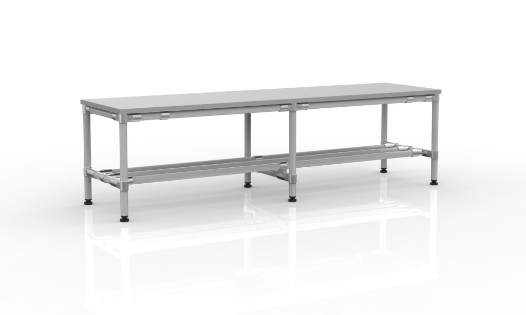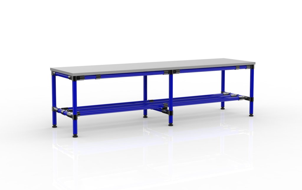 Lavice z trubkového stavebnicového systému šířky 1500 mm.