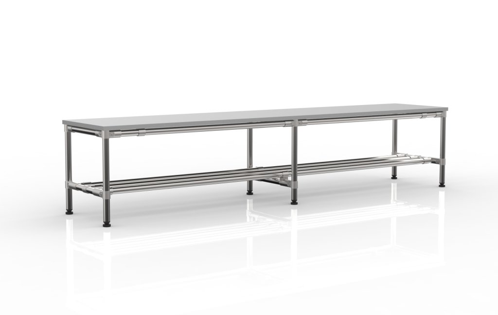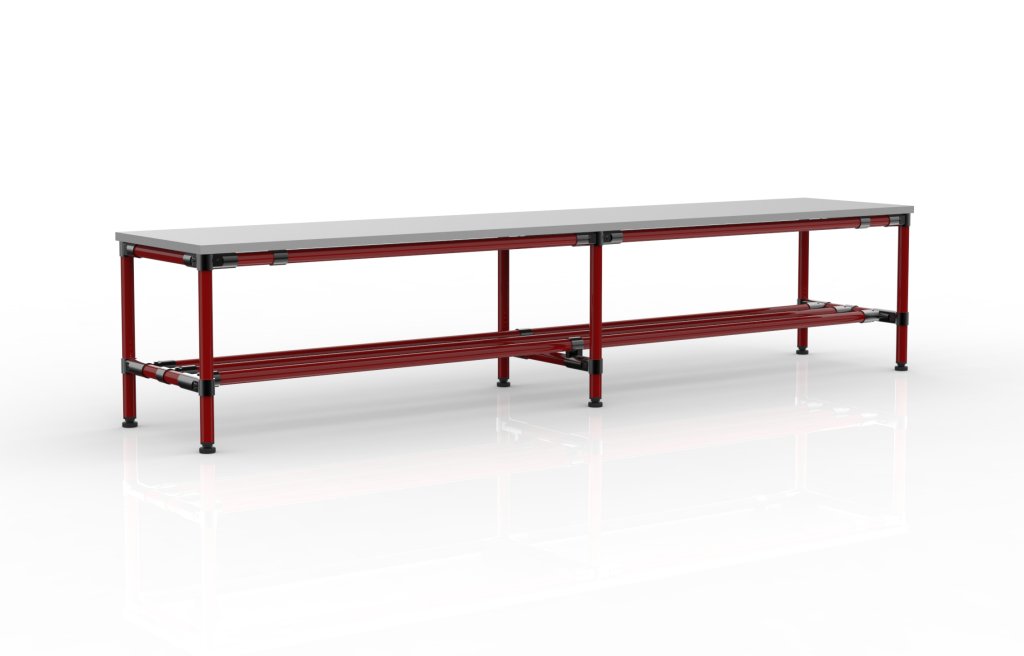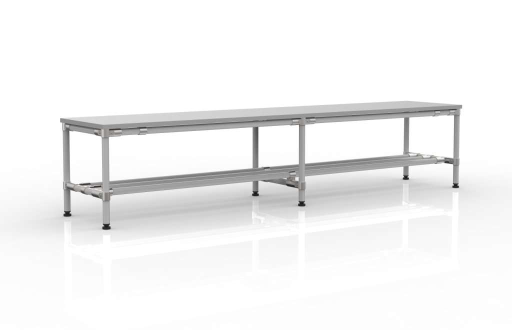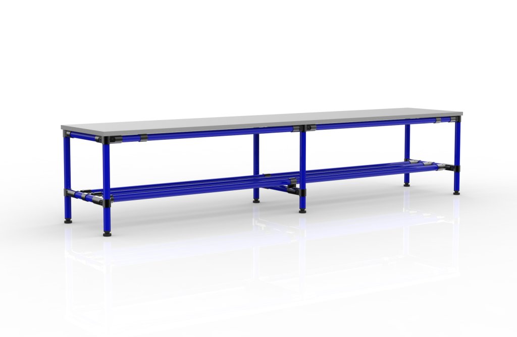 Lavice z trubkového stavebnicového systému šířky 2000 mm.