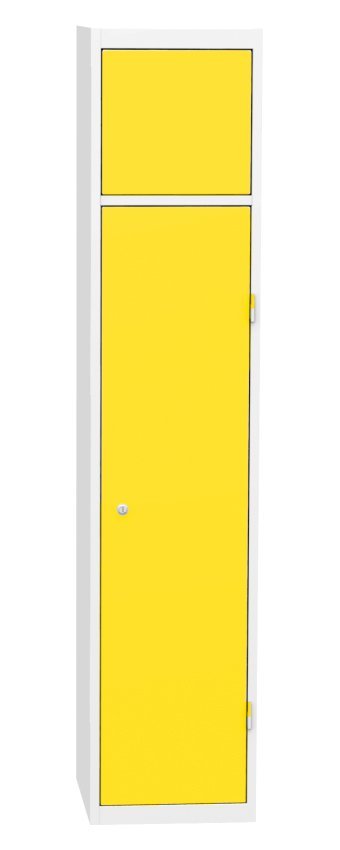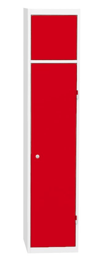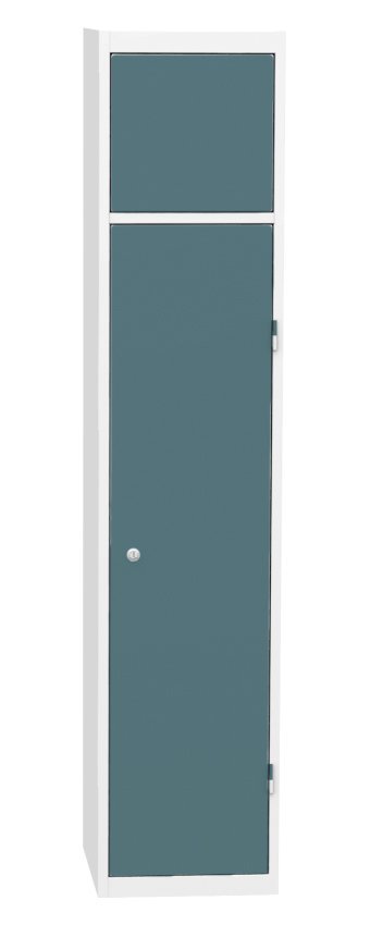 Skříň pro výdej čistých pracovních oděvů, šířka 380, výška 1770, hloubka 460 mm. Obsahuje čtyři výdejní boxy a jeden centrální rám pro obsluhu. Každá výdejní schránka a centrální rám pro obsluhu jsou uzamčeny cylindrickým zámkem. Barva korpusu RAL 7035 světle šedá.
