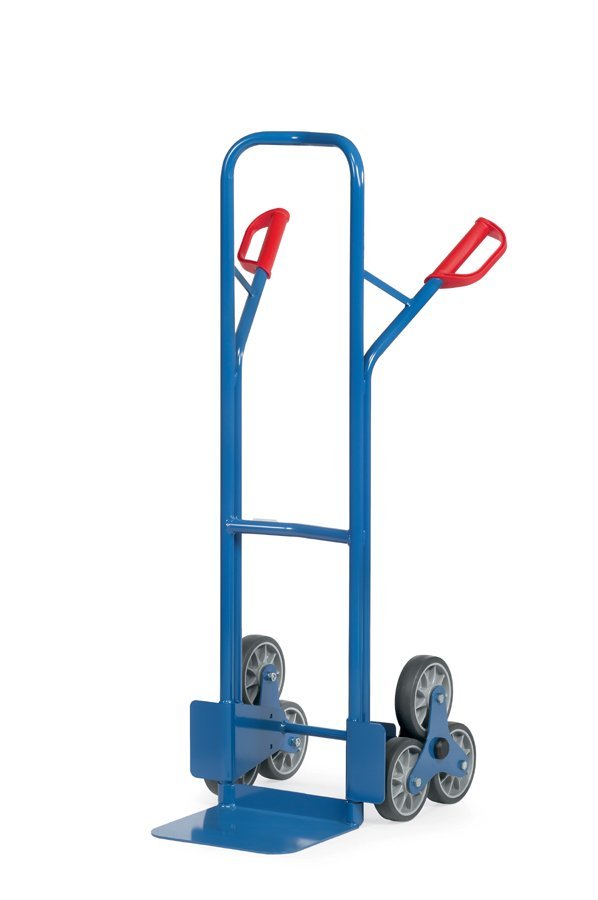 Ocelový rudl německé výroby pro přepravu zboží po schodech, konstrukce ze svařované oceli, lopata z ocelového plechu, ochranná madla pro ruce. Speciální pneumatická kolečka Fetra TPE - 2 trojramenná kola, každé kolo je vybaveno 3 TPE pneumatikami o průměru 160 mm.